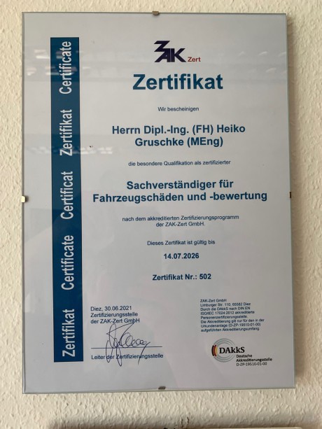 Kraftfahrzeug-Sachverständige ZAK-Zert